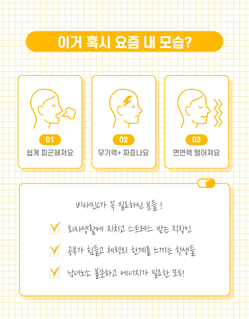 비타민C란, 우리 몸을 구성하는 조직을 자라게 하고, 손상된 조직을 복구하는데 주로 사용됩니다. 그래서 흔히, 피로 해소에 좋은 영양소로 알려져 있죠. 이 뿐만 아니라